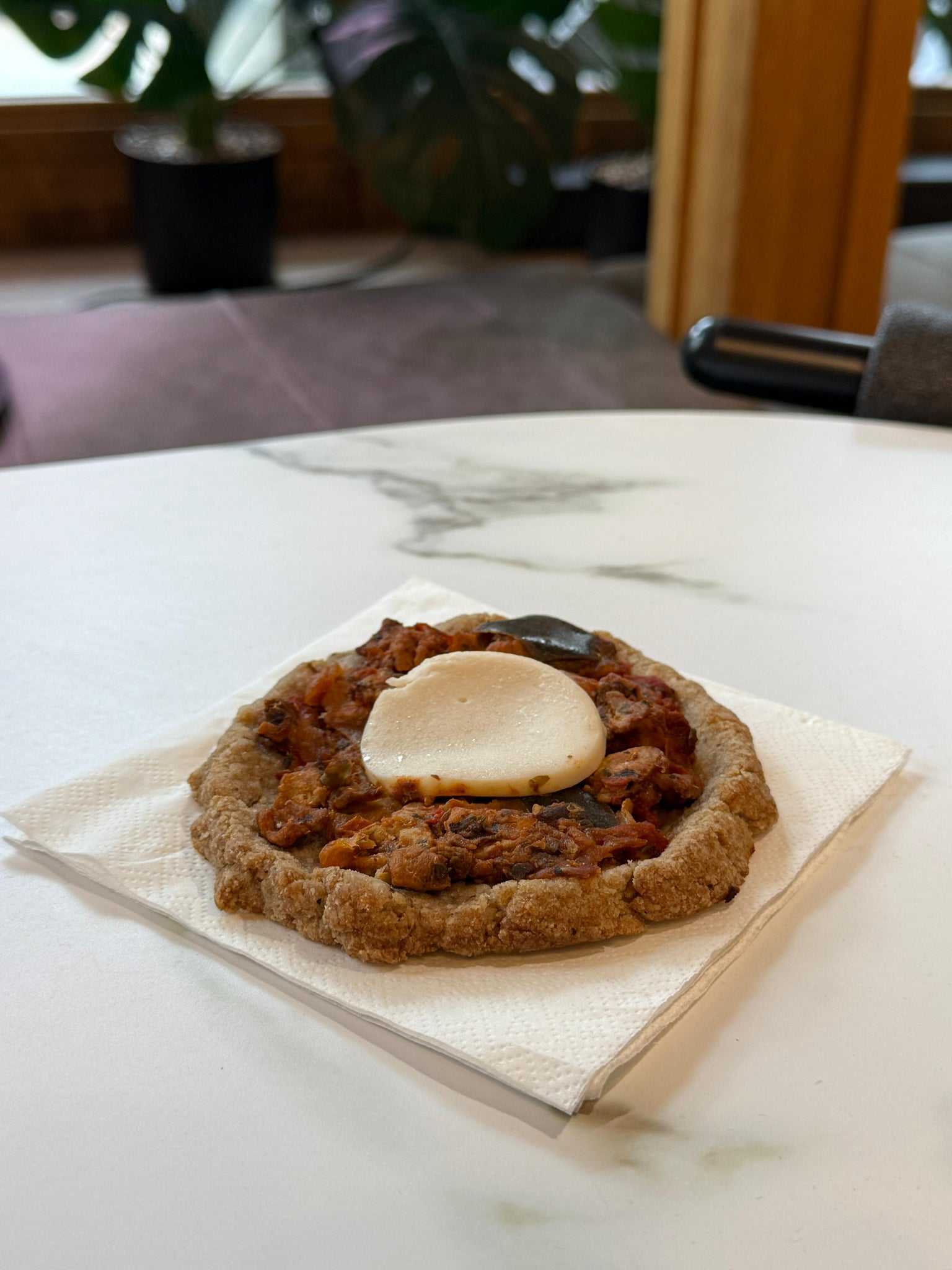 Sauce: Tomato, Onions, Aubergine, Red Peppers, Pea Protein, Faba Protein, Pitted Black Olives, Green (Basil), Sunflower Seeds, Capers, Garlic, Vegetable Bouillon, vegan Yeast Extract, Turmeric, Molasses, Potato, Lemon Juice, Black Pepper, Oregano, White Pepper