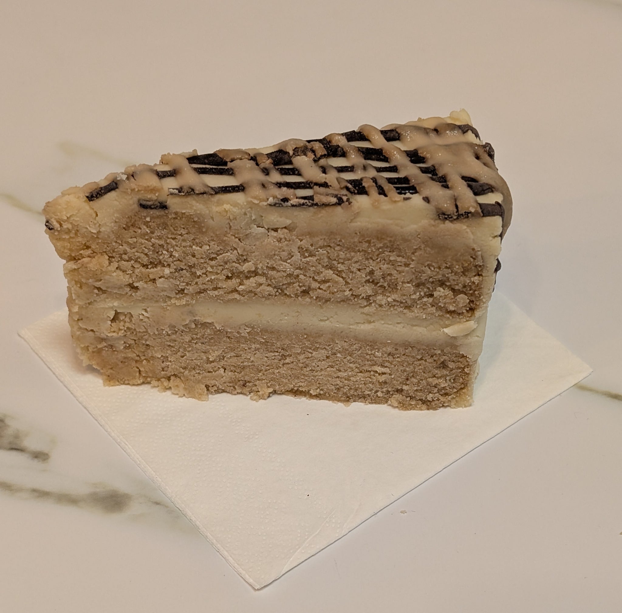 This delicate vanilla cake is sandwiched, then frosted with vanilla. It is simply a bite of elegance for those who don't like strong flavours.